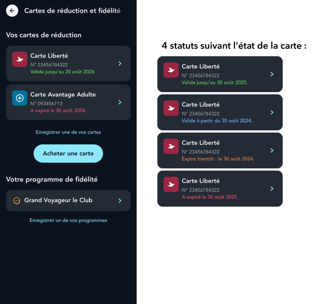 Vous aviez également souligné la difficulté à identifier le statut d’une carte, qu’elle soit valide ou expirée. Nous avons pris en compte vos retours et clarifié cette information.